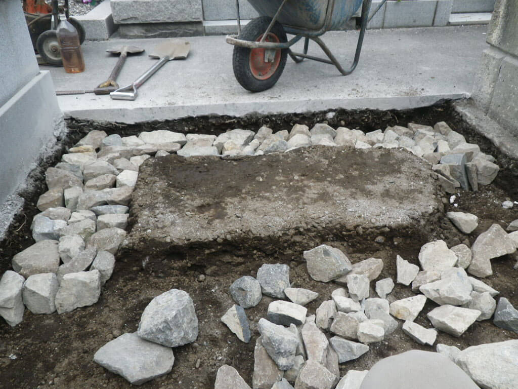 - 基礎工事、外柵カロウト、石塔の順番に据え付けていきます。